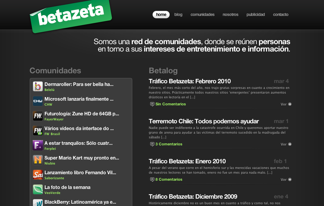 First designer hired at Betazeta, the then-largest blog network in Latin America, while 17. Designed the corporate website, which remained in use for several years.