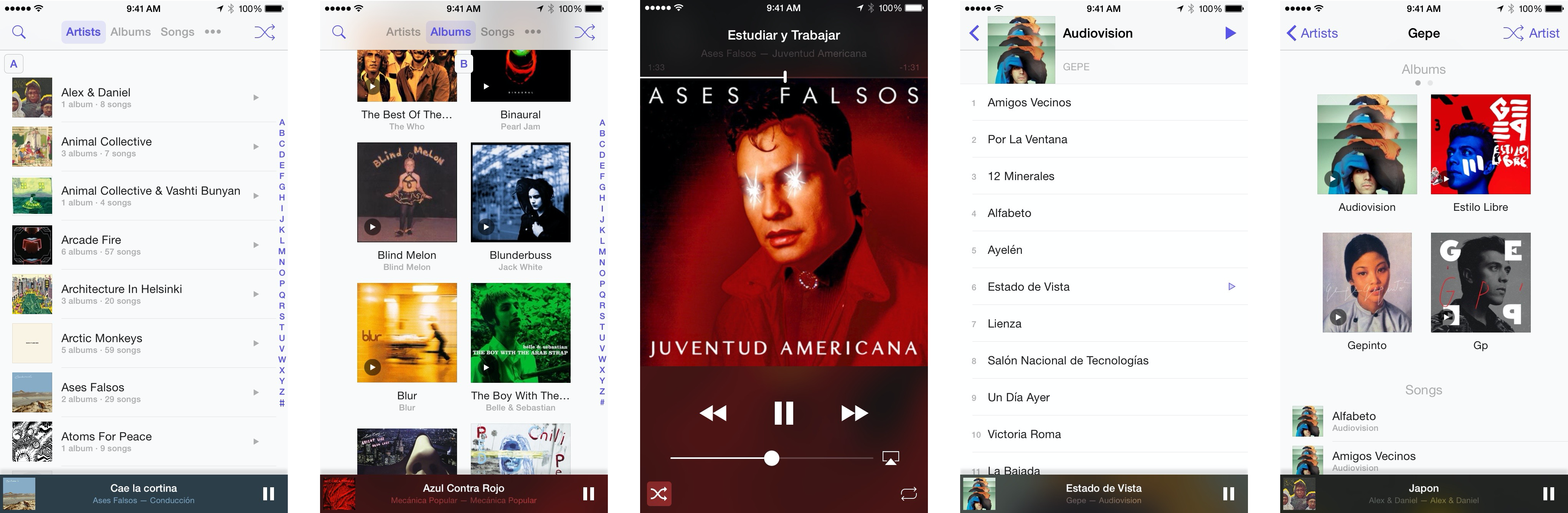 The Now Playing screen was omnipresent and could be swiped up from the bottom, essentially establishing a secondary layer above the library, which was reinforced by the coarse use of shadows.